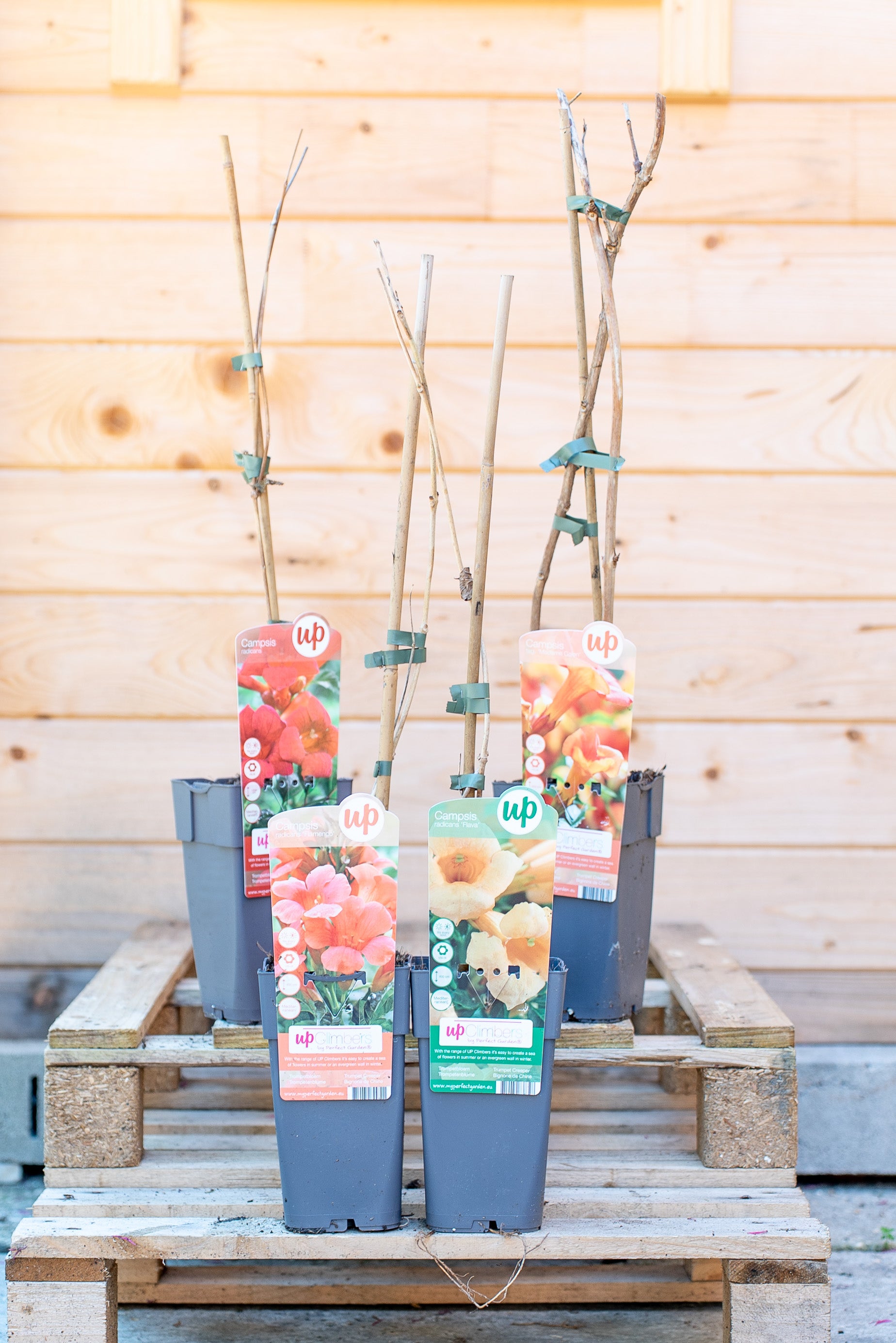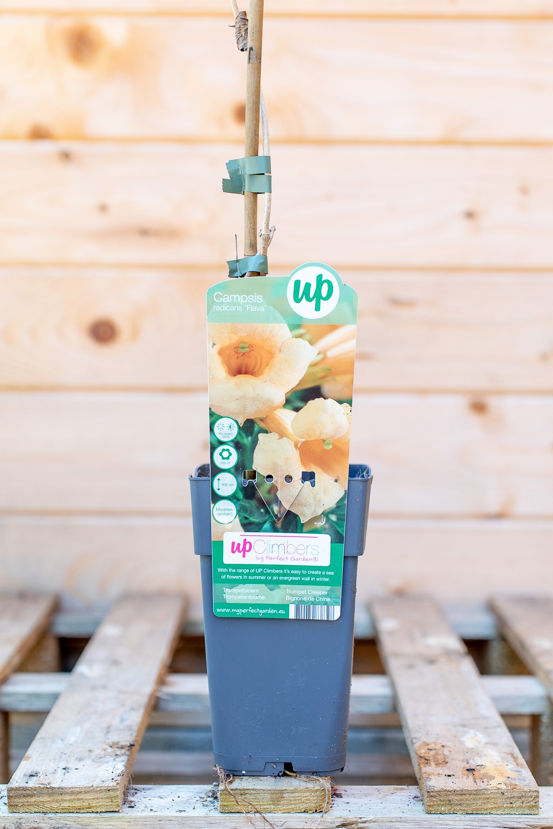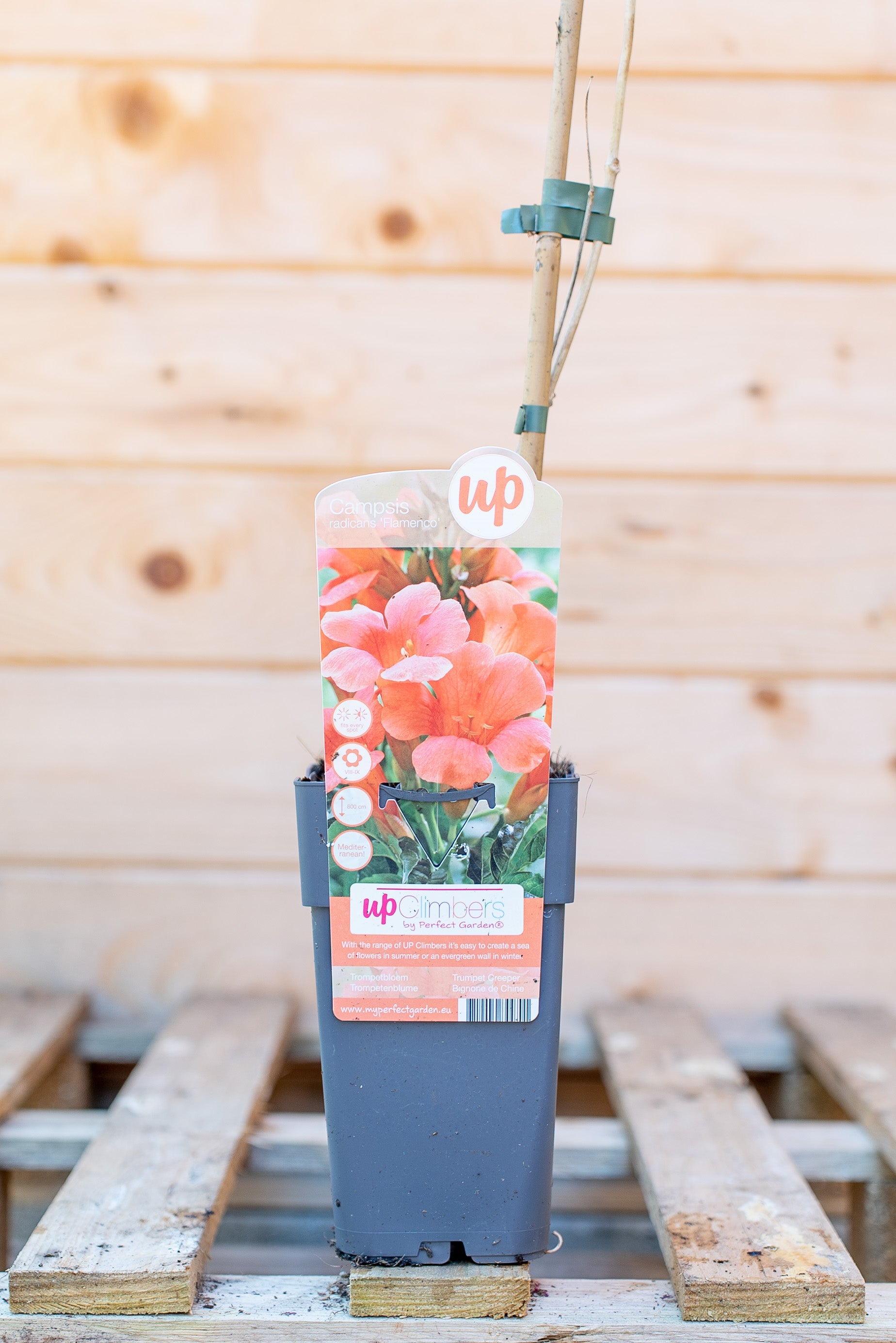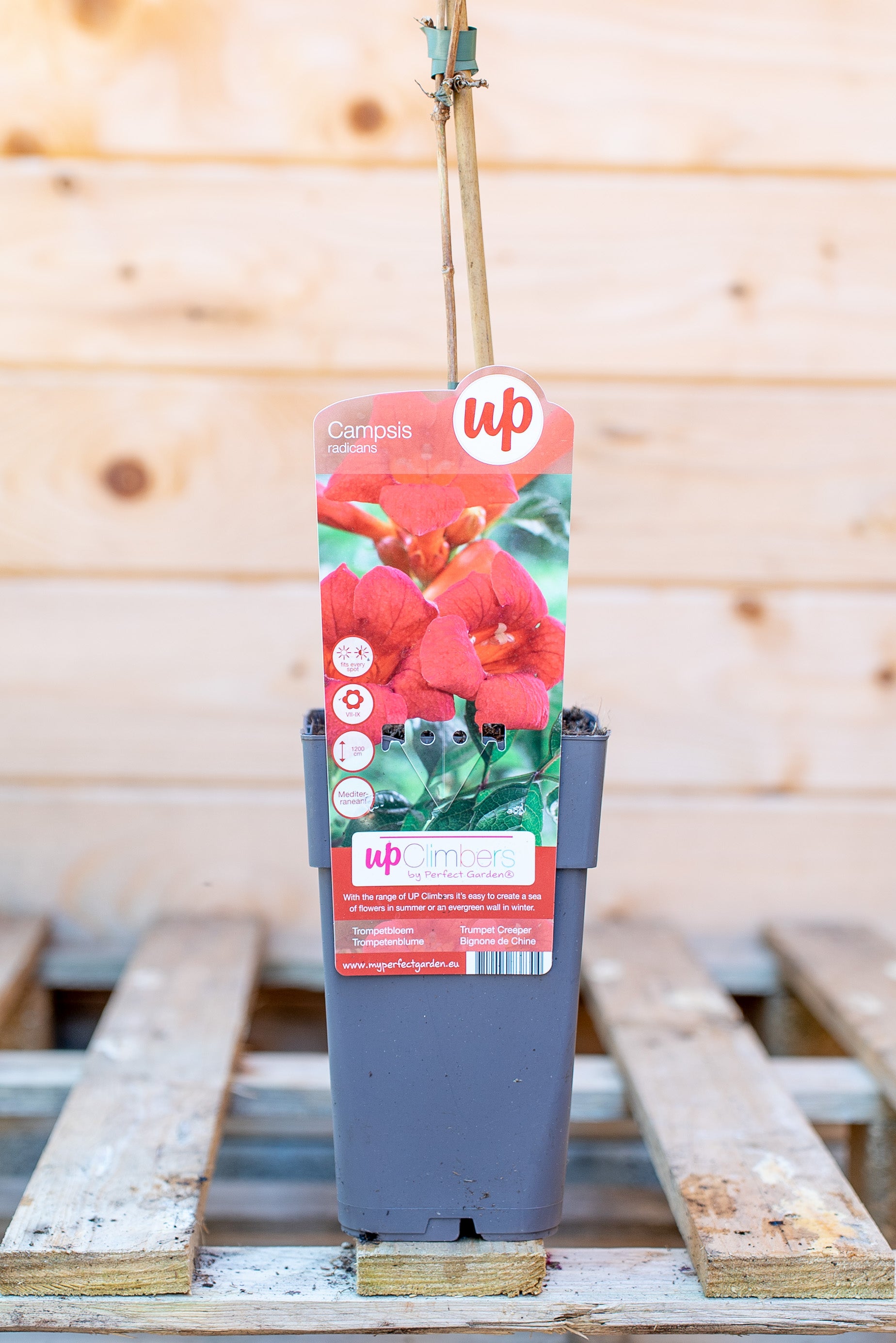 La Campsis Bignonia è un rampicante deciduo e a crescita rapida, che può raggiungere 8-10 metri di altezza grazie ai suoi viticci adesivi che le permettono di aggrapparsi a qualsiasi supporto. Le sue foglie sono pennate, di colore verde brillante, e creano un effetto folto e rigoglioso. I suoi fiori, a forma di tromba, sono di un acceso colore arancio-rosso, e sbocciano in grappoli, regalando un aspetto esotico e scenografico.