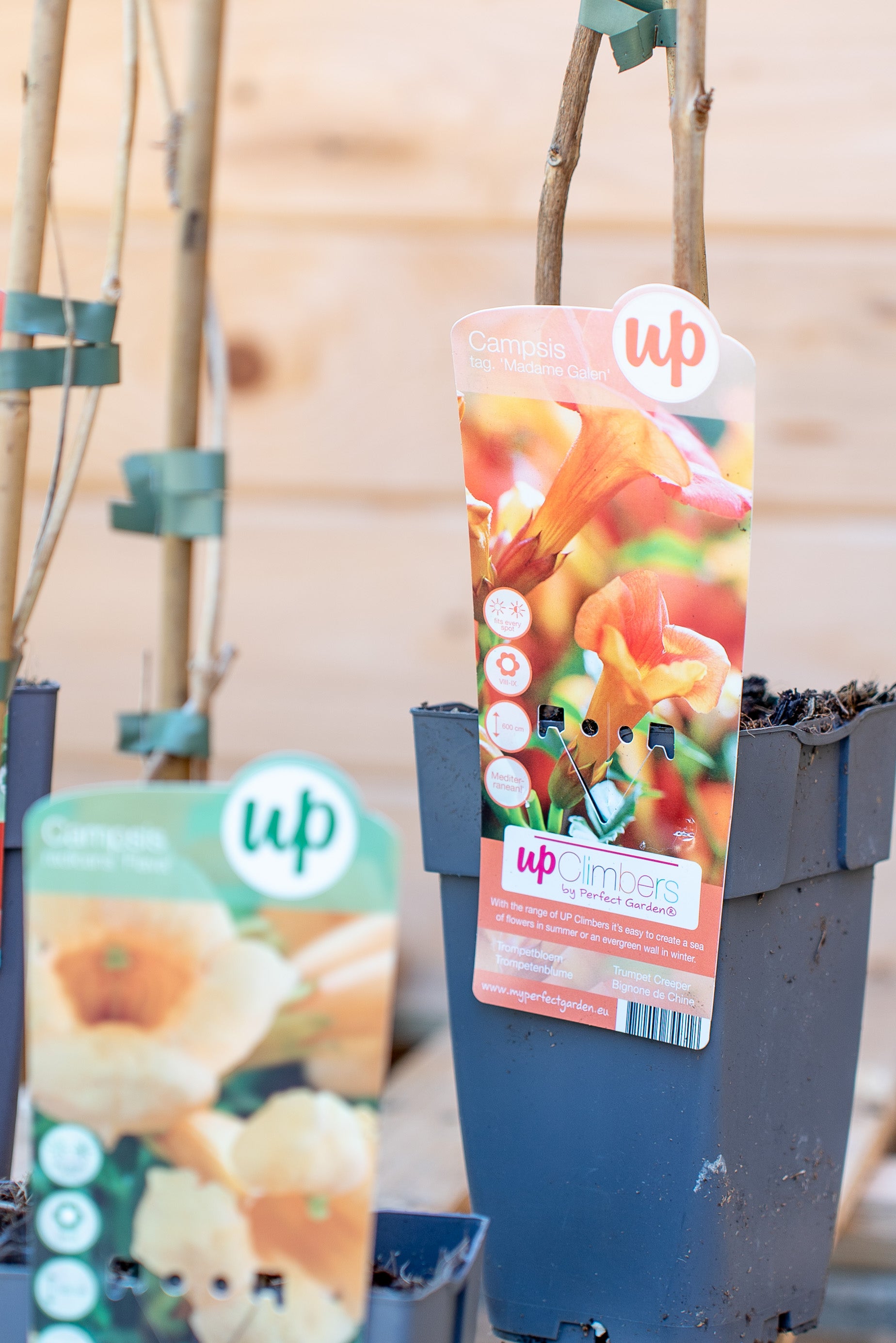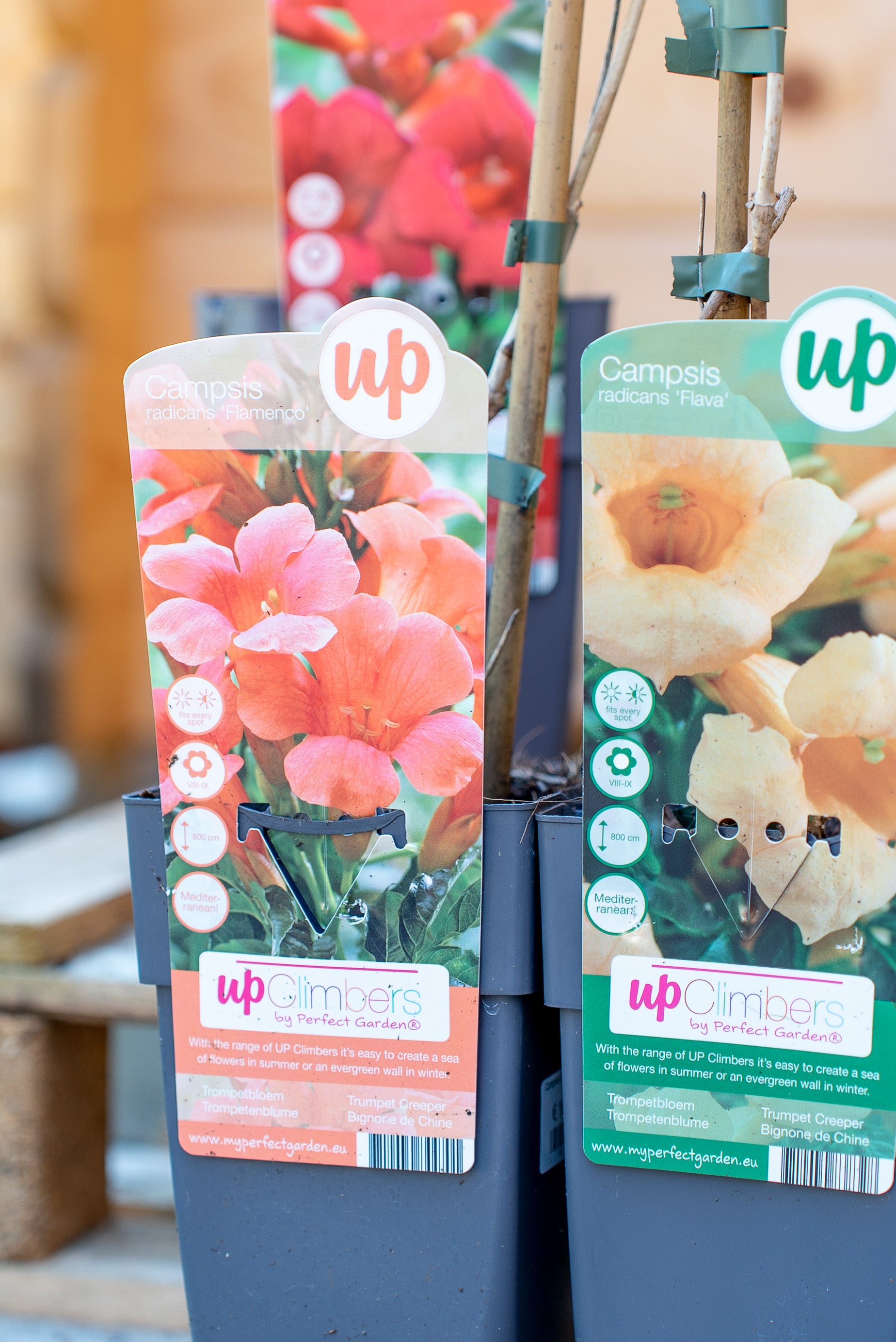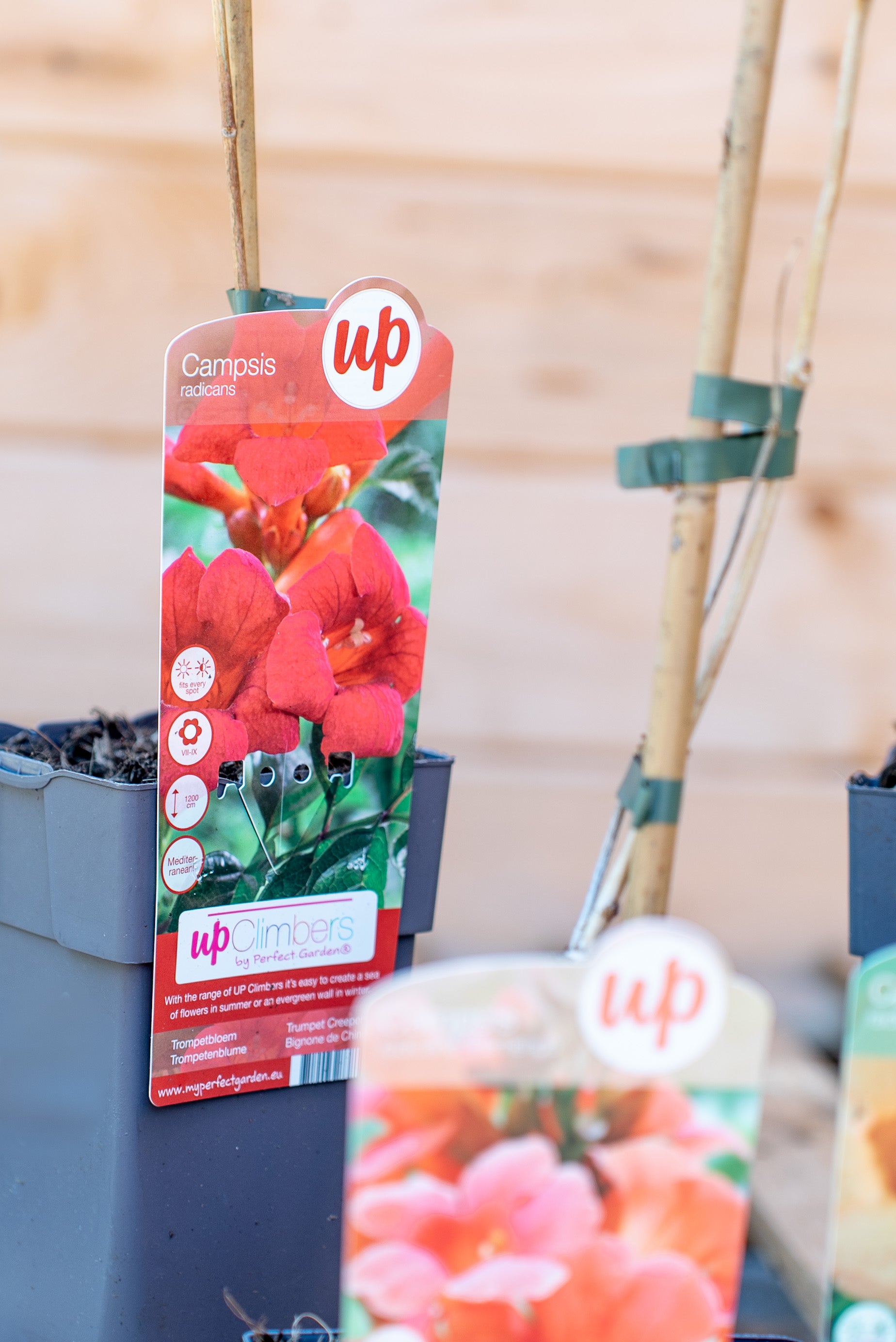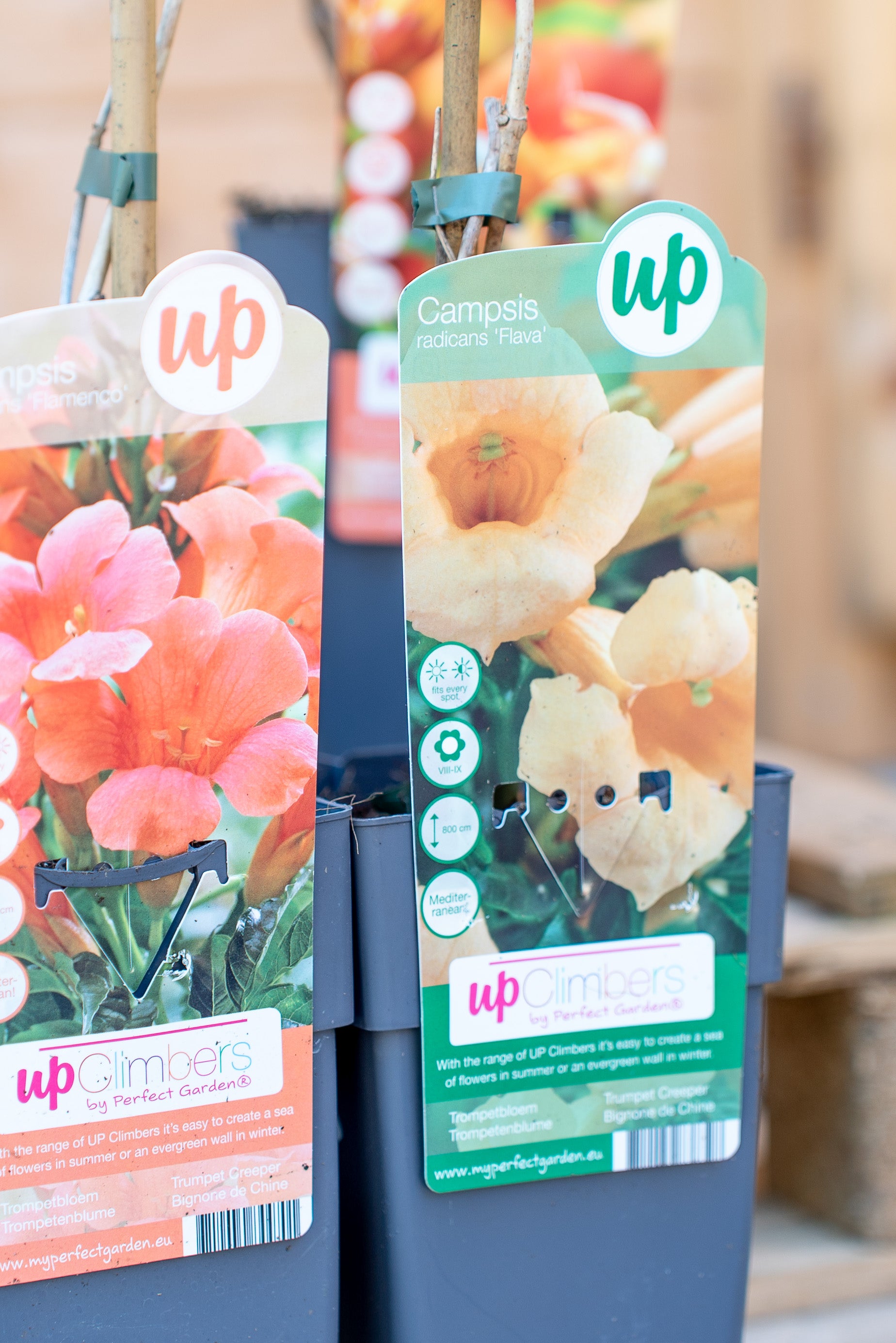 La Campsis Bignonia è un rampicante deciduo e a crescita rapida, che può raggiungere 8-10 metri di altezza grazie ai suoi viticci adesivi che le permettono di aggrapparsi a qualsiasi supporto. Le sue foglie sono pennate, di colore verde brillante, e creano un effetto folto e rigoglioso. I suoi fiori, a forma di tromba, sono di un acceso colore arancio-rosso, e sbocciano in grappoli, regalando un aspetto esotico e scenografico.