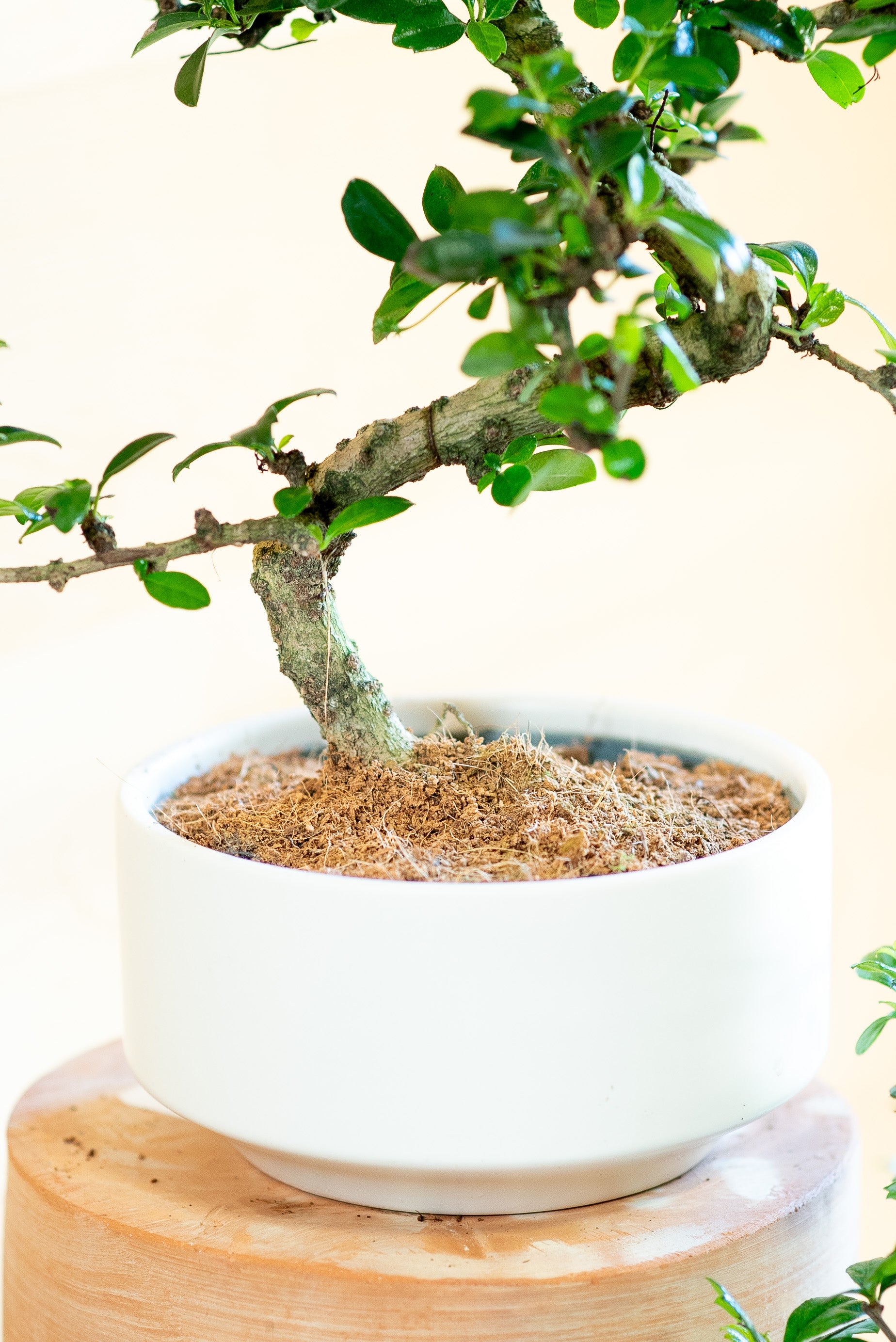 Origini della pianta: La Carmona microphylla, conosciuta anche come tè di Fukien, è originaria delle regioni tropicali dell’Asia, in particolare Cina e Indonesia. È un bonsai apprezzato per le sue foglie piccole e lucide, i fiori bianchi delicati e i piccoli frutti rossi decorativi.