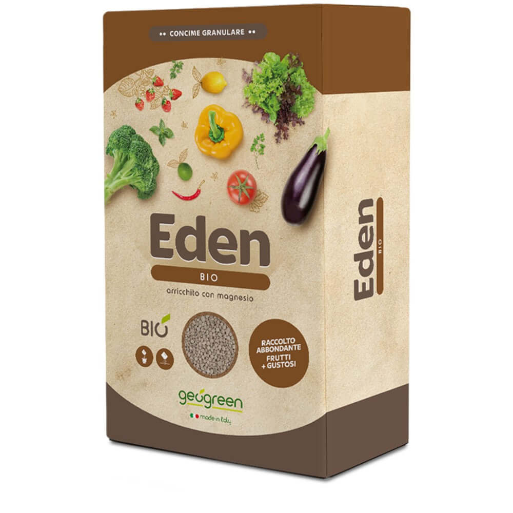 Caratteristiche: EDEN BIO è un concime organo-minerale consentito in agricoltura biologica, ideale per la concimazione di ortaggi e frutta. La sua formulazione si adatta ai processi naturali, contribuendo ad arricchire il suolo di preziosi nutrienti e garantendo allo stesso tempo la salubrità dei prodotti. Il potassio da solfato contenuto al suo interno consente la produzione di frutta e verdura più colorate, profumate e gustose. Il mirato contenuto in magnesio migliora ulteriormente le caratteristiche organolettiche dei raccolti. EDEN BIO migliora inoltre la disponibilità degli elementi nutritivi, favorisce lo sviluppo vegetativo e fioriture dai colori brillanti.
