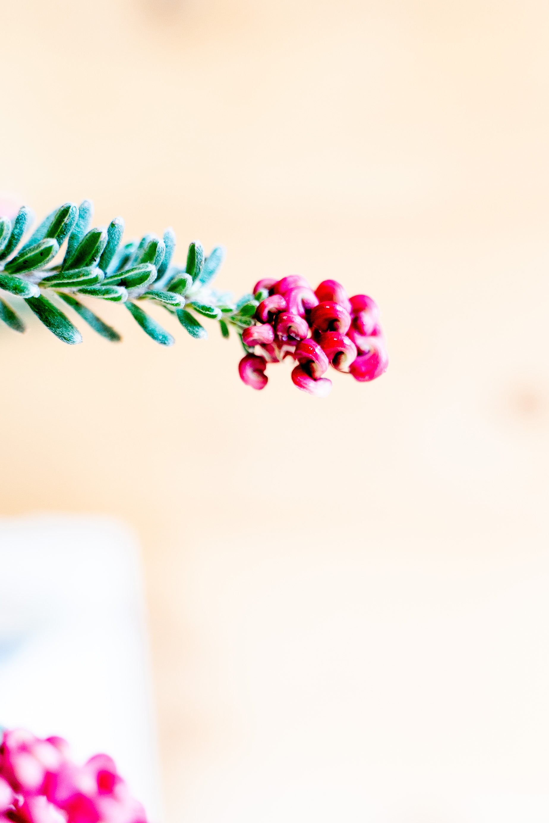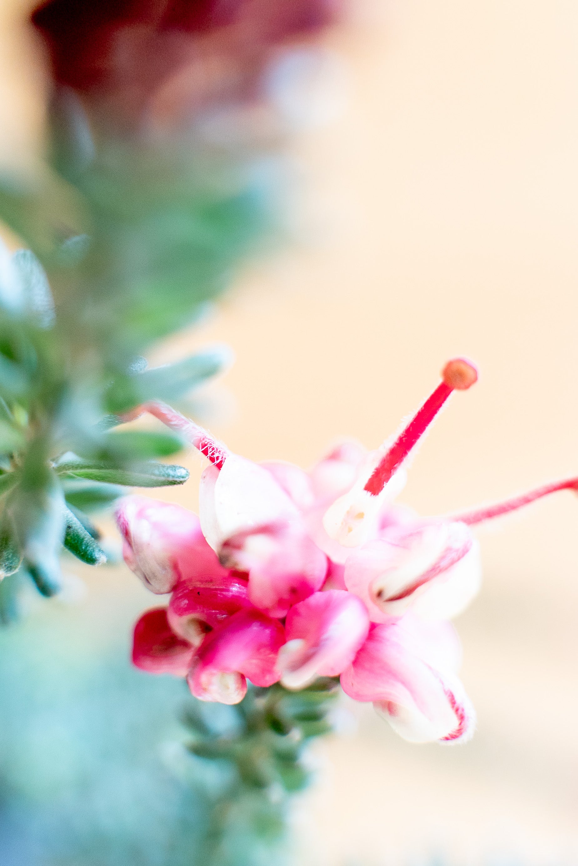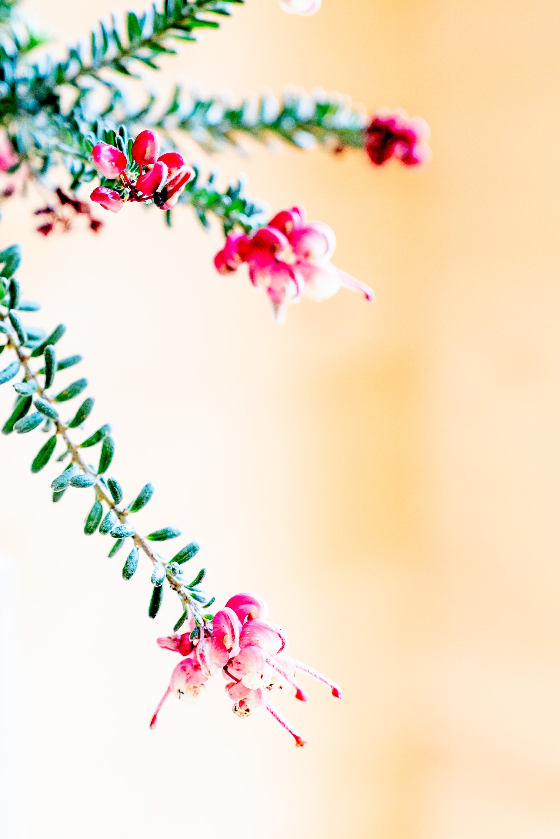 La Grevillea Tamboritha è un arbusto sempreverde a crescita bassa e compatta, con un portamento tappezzante che può raggiungere un'altezza di 30-50 cm e una larghezza di circa 1 metro. Le sue foglie sono sottili, aghiformi e di un verde intenso, ricordando quelle di alcune conifere. I fiori, il vero punto di forza della pianta, sono di un intenso colore rosso-arancio, con sfumature rosa e giallo. La loro forma caratteristica, simile a piccoli pennelli, attira api, farfalle e uccelli nettarivori, contribuendo all’ecosistema del giardino.