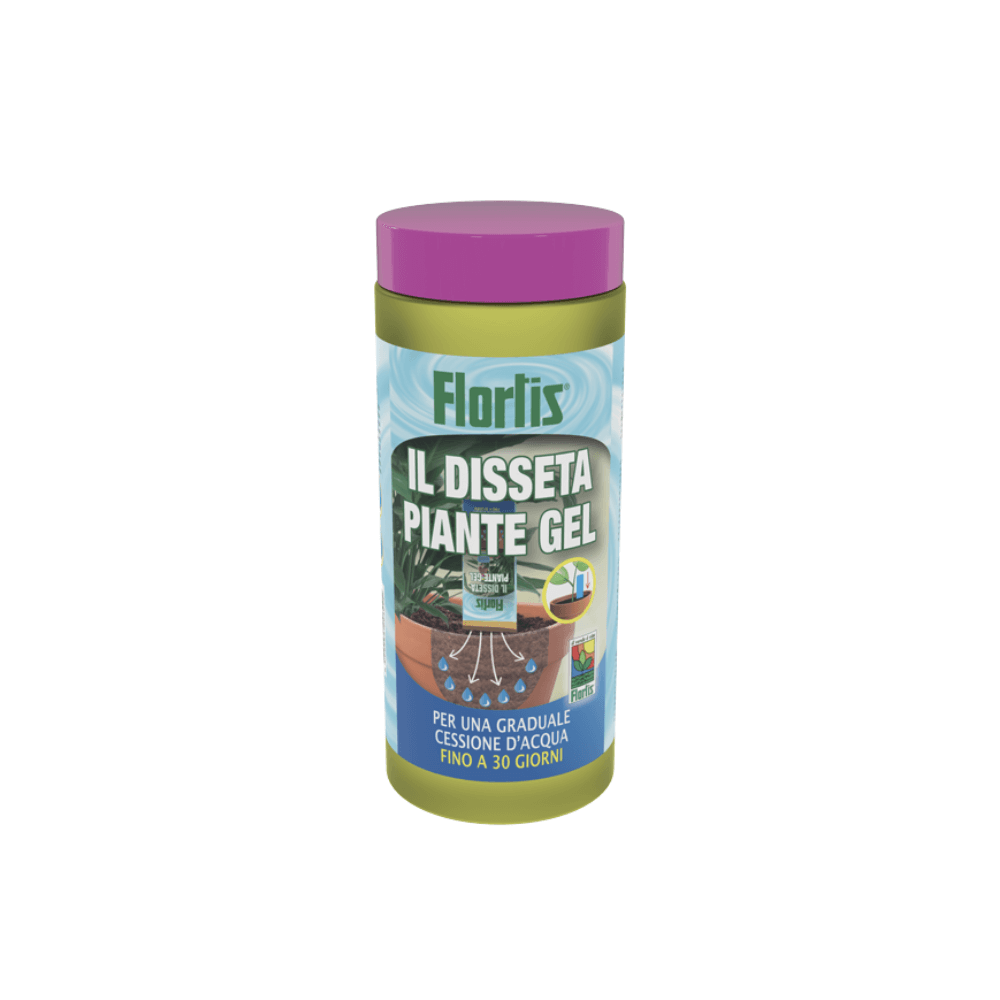 Prodotto appositamente studiato per garantire un graduale e continuo rilascio di acqua. Le fibre di cellulosa che costituiscono il gel, trattengono l'acqua per poi cederla lentamente quando il prodotto viene messo a contatto con il terreno. Grazie all'azione dei microrganismi contenuti nel "Disseta Piante", l'acqua risulta così disponibile alla pianta per un periodo di 20-30 giorni*.